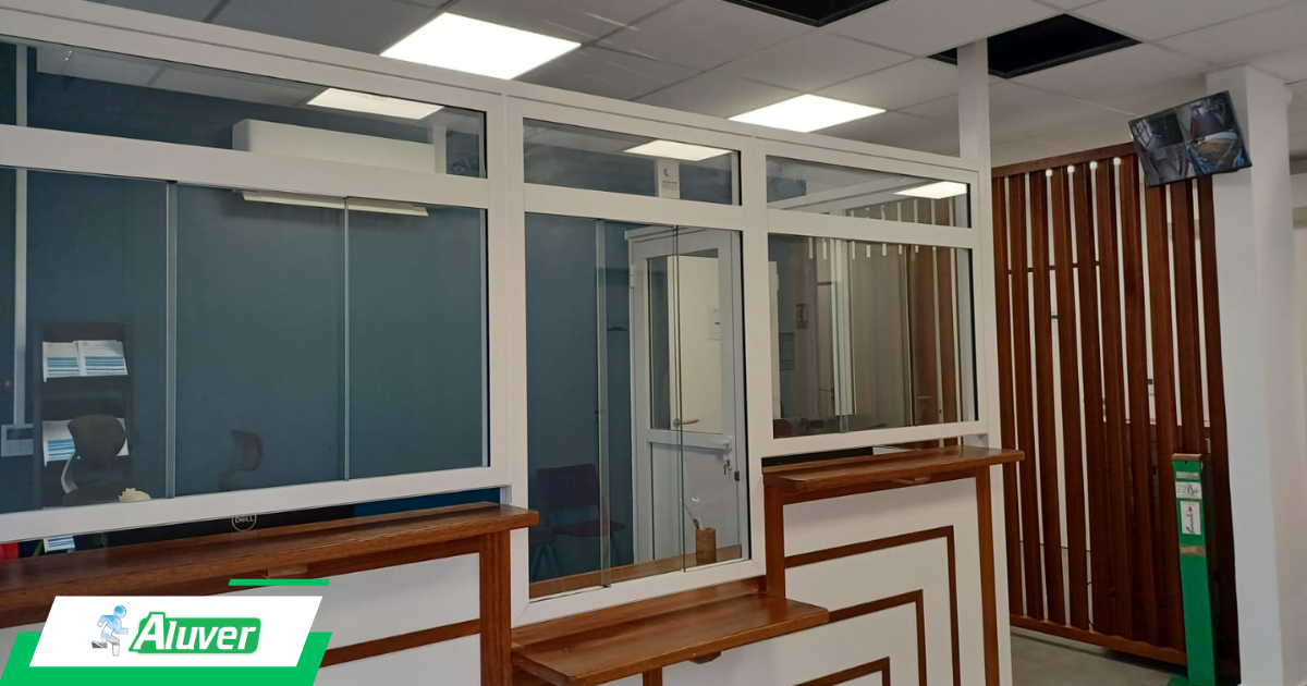Pour cette administration de Guyane, des espaces d’accueil sécurisés Ici, soubassement stratifié, plateau d’accueil en bois rouge … Le reste en aluminium et vitrage sécurisé. 💫 Faites avancer votre projet… votre simple idée ! Contactez ALUVER, nous les ferons avancer 🚀