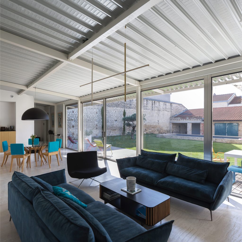 Véritable cocon à l’abri des regards, cette maison de 205 m² au cœur de Reims a été édifiée sur une parcelle permettant la construction en intérieur d’îlot et de plain-pied.