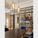 Décloisonnée, cette cuisine située dans un haussmannien est aujourd’hui séparée du séjour par une verrière théâtrale, inspirée du style urbain new-yorkais. Une réalisation hors norme qui apporte un maximum de lumière à cet intérieur classique.
